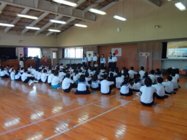 1学年終日校外学習に向けて、学年集会をしました。学年委員会がスローガン「Discovery~富山の技術や文化を体感し、学びを広げよう」について説明をしました。このスローガンには、富山での出会いや体験を通して、新しい発見を仲間と分かち合い、自分の世界を広げていこうという願いが込められています。係の仕事や事後学習等についても確認しました。