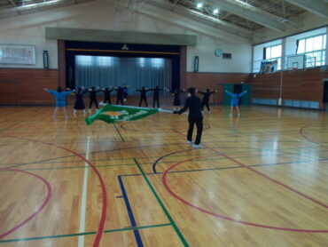 11月3日に行われる牧野校下文化祭に向けて、生徒会応援団が動きの確認をしました。文化祭では、書道部、美術部の作品も展示されます。