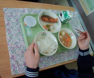 学校給食週間最終日は、SDGs14・15「海の豊かさを守ろう 陸の豊かさも守ろう」で、地場産品献立でした。生徒玄関前には、給食委員会企画「学校給食感謝カード」が掲示されています。牛乳パック、りんご、魚、オレンジ等の形を示すメッセージカードに、ぎっしりと感謝の言葉が書かれています。「毎日朝早くから給食を作ってくださり、ありがとうございます。魚の出る給食が一番心に残っています」「いつもおいしい給食をありがとうございます。心も体も元気になる給食を楽しみにしています」